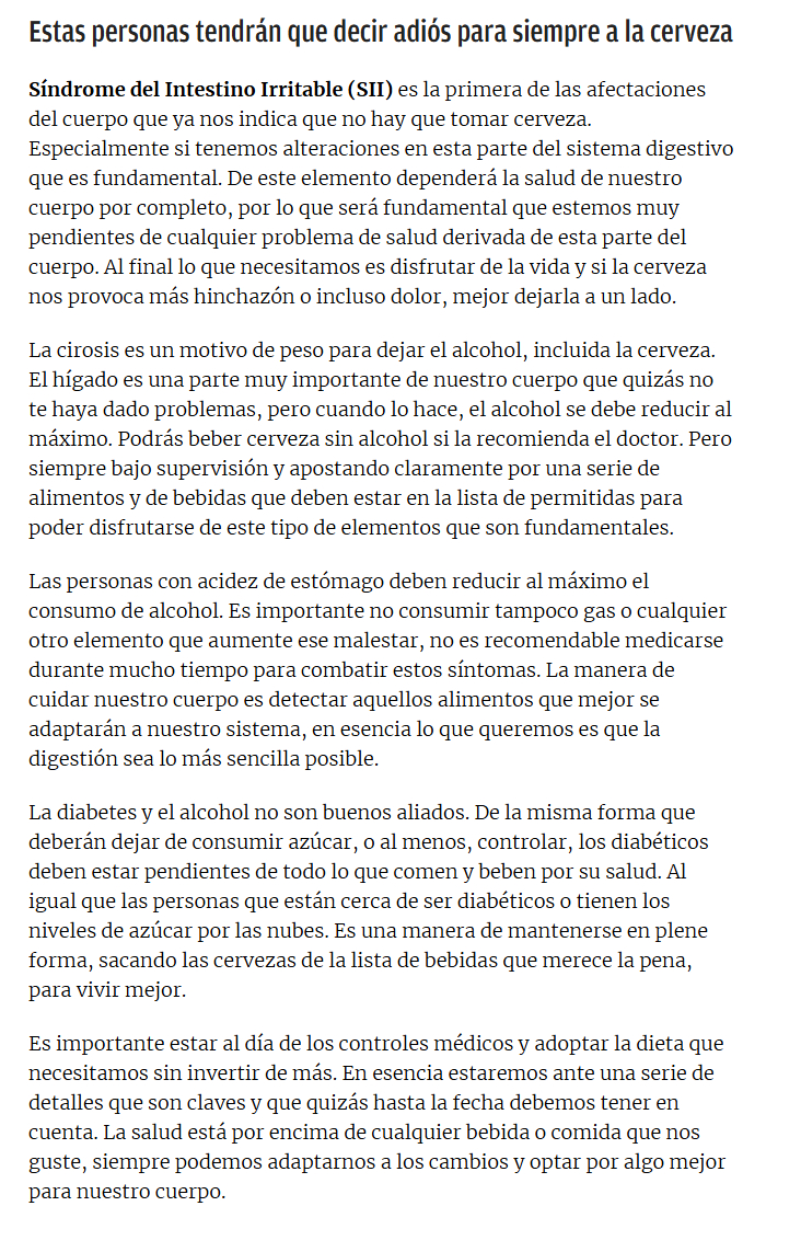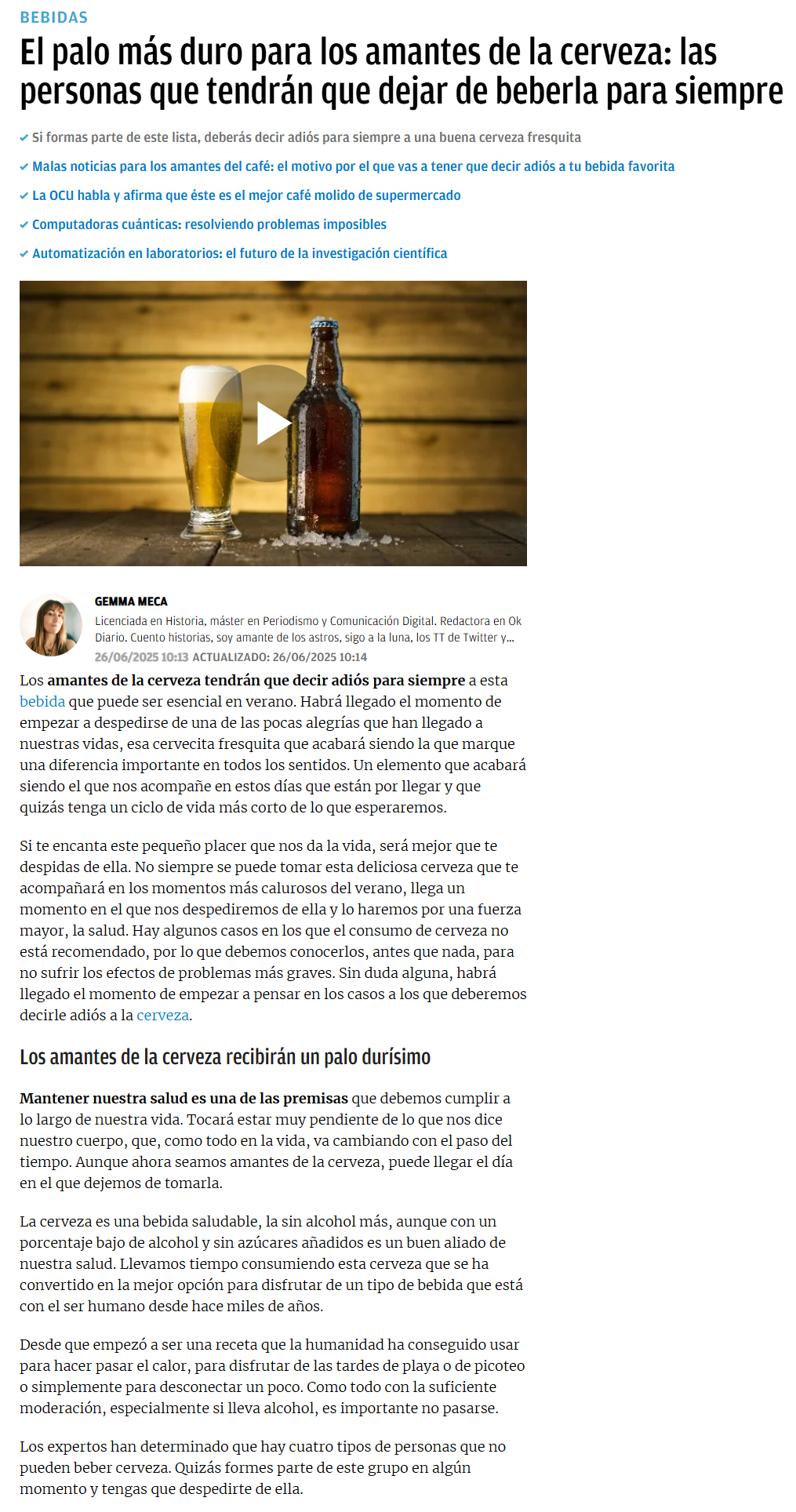 Te invito a leer la noticia "El palo más duro para los amantes de la cerveza: las personas que tendrán que dejar de beberla para siempre " en Update Comunica. https://updatecomunicaciones.cl/update/noticia/286783 Atentamente,