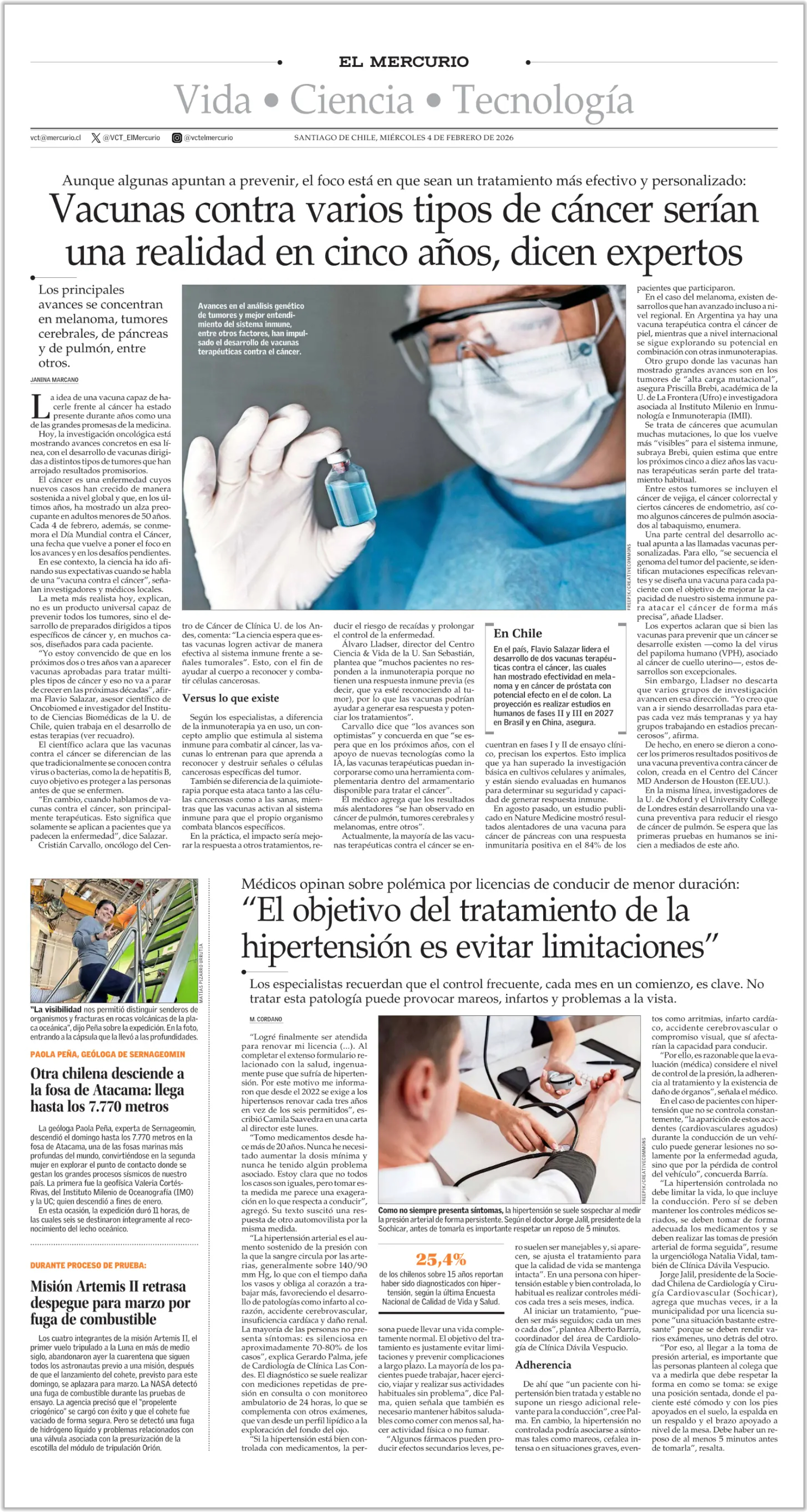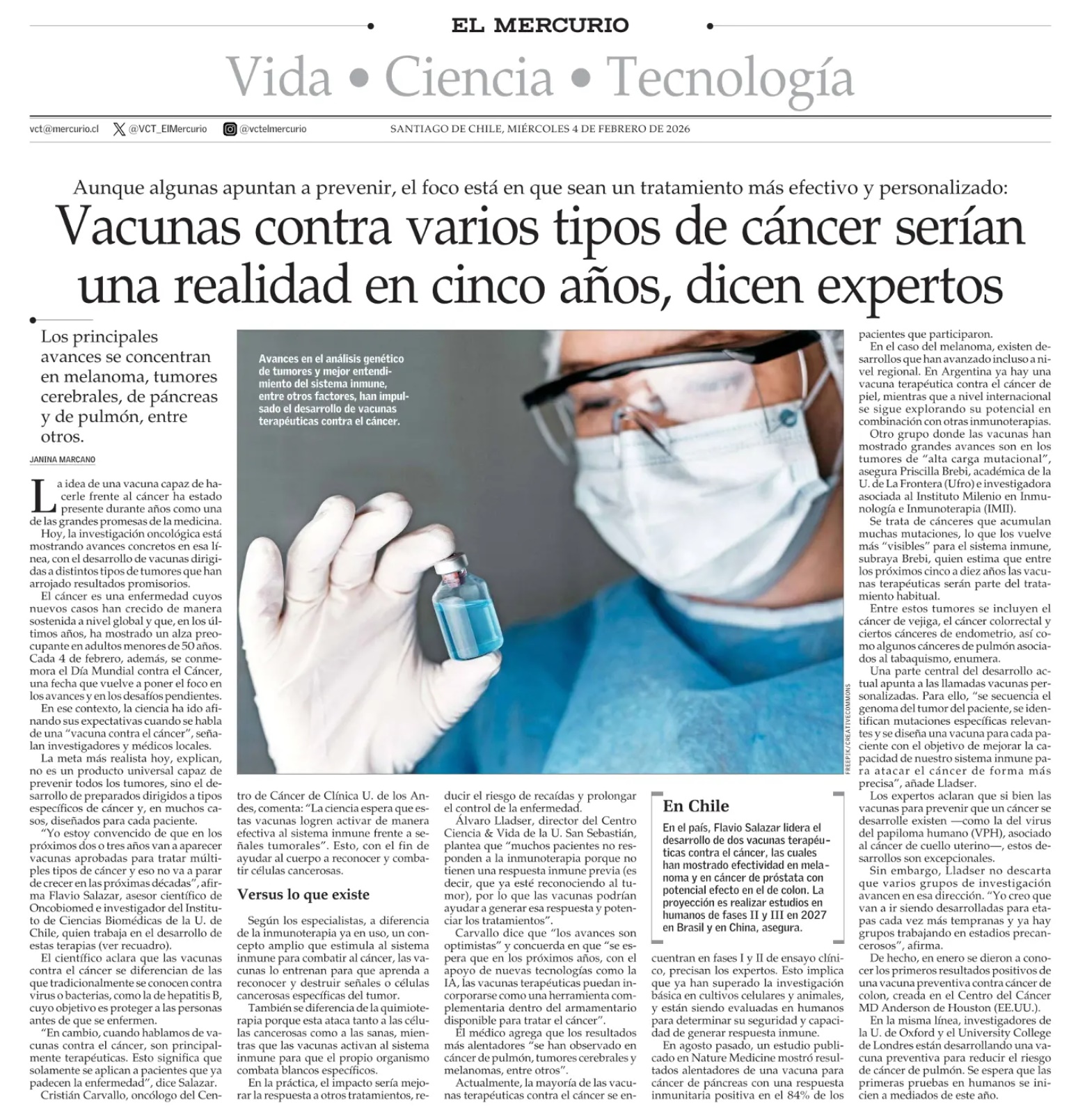 Te invito a leer la noticia "Vacunas contra varios tipos de cáncer serían una realidad en cinco años, dicen expertos" en Update Comunica. https://updatecomunicaciones.cl/update/noticia/307890 Atentamente,